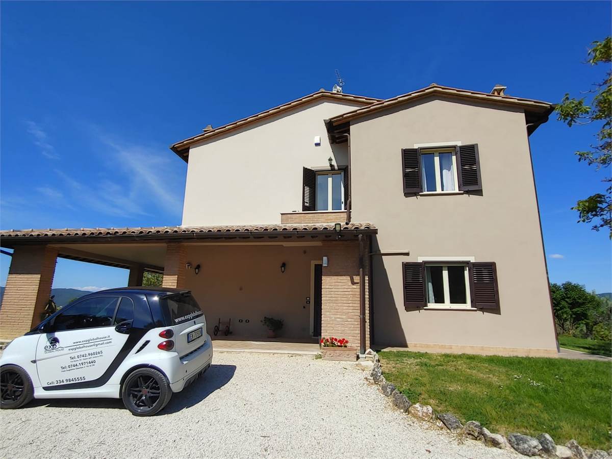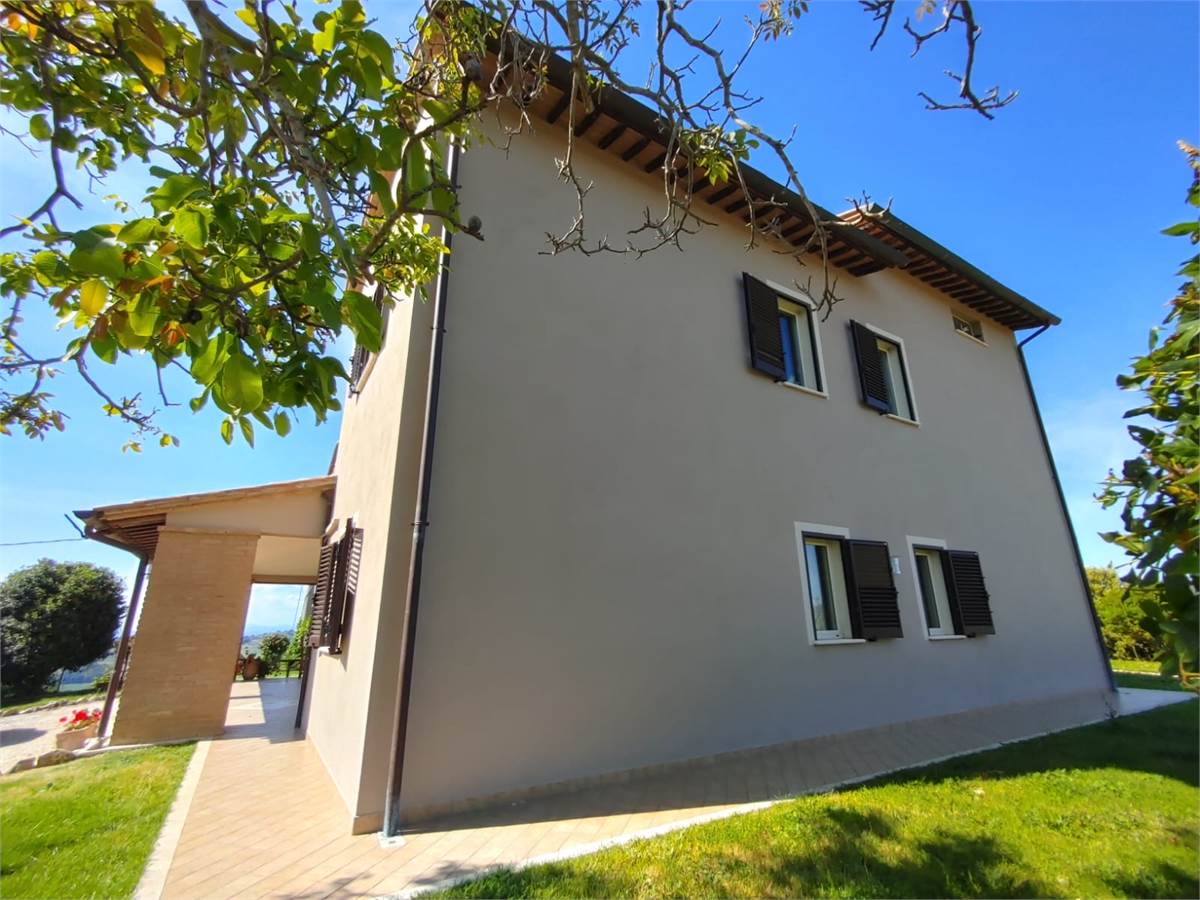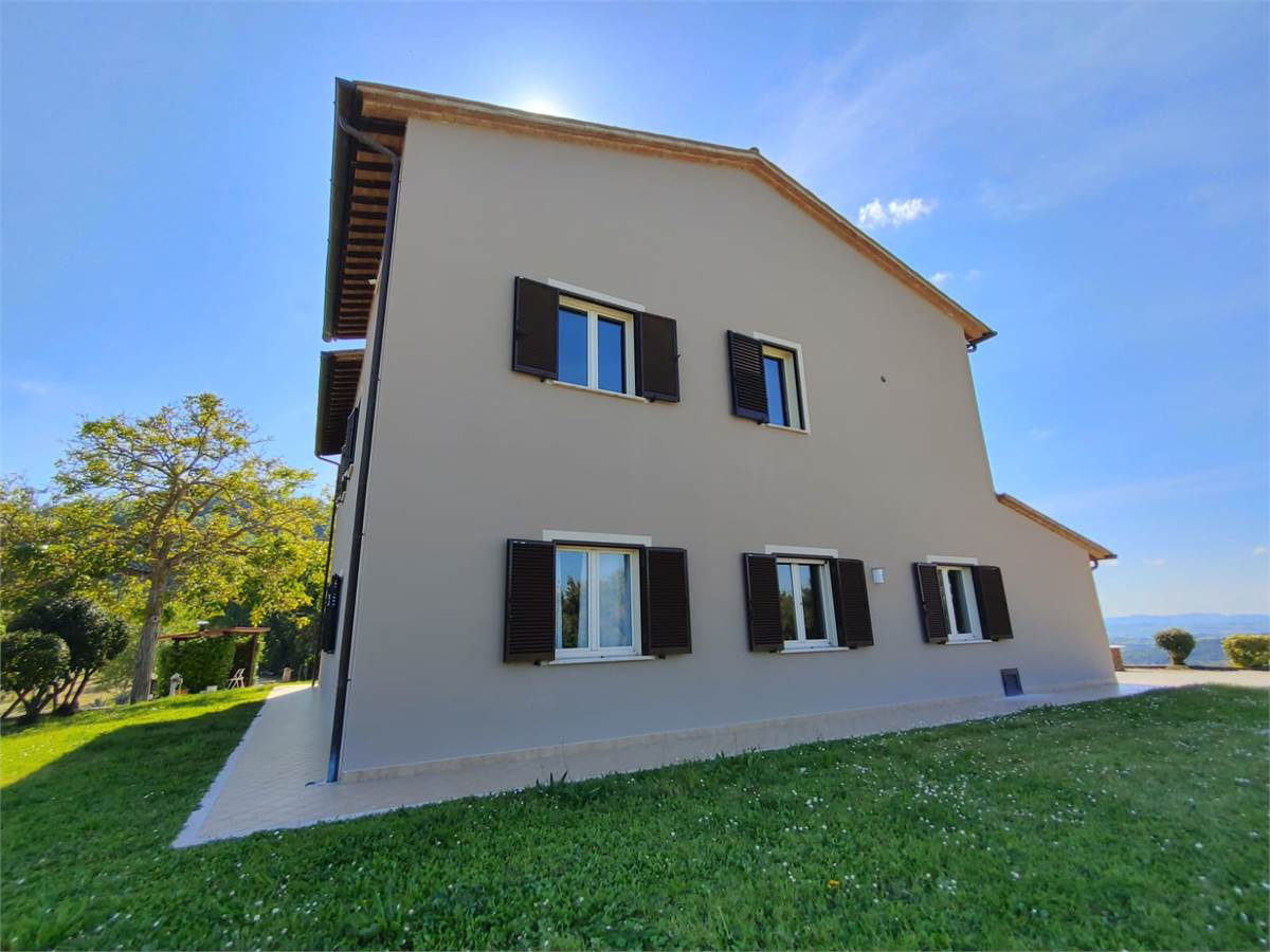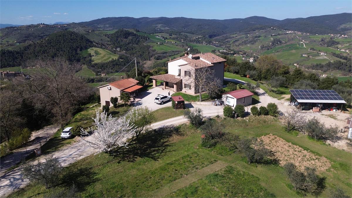 Nel comune di Collazzone nelle meravigliose colline tra Saragano e Gaglietole posto sopra ad una collina con una vista stupenda proponiamo in vendita esclusiva questo casale di recente costruzione per una superficie utile complessiva di oltre 300 m2 un bellissimo portico di oltre 50 m2, una dependance di 40 m2 e due magazzini per un ulteriore superficie di oltre 50 m2. Completa la proprietà un terreno agricolo promiscuo di oltre 50.000 m2. Il casale è stato realizzato da poco più di 10 anni a questa parte ed è pari al nuovo si sviluppa su 3 livelli fuori terra ed è così composto: al piano terra entrando dall' ingresso principale troviamo un grandissimo salone, una cucina abitabile 2 camere da letto e un bagno, poi sempre al piano terra abbiamo anche una seconda cucina, un' ulteriore stanza da adibire a camera/ studio o altro e un ripostiglio e un 2' bagno. Al piano 1 ritroviamo poi un 2' soggiorno con una 3' cucina, altre 3 camere da letto e altri 2 bagni e un balcone panoramico. Al piano 2' ed ultimo abbiamo la soffitta. A pochi metri dal casale troviamo 2 comodi magazzini e un grande garage. Poi la dependance anche lei a pochi metri dall' abitazione principale è costituita da un soggiorno con angolo cottura, 2 camere da letto e bagno. La posizione è di indiscutibile bellezza. A pochi km circa 5 abbiamo la E 45 da dov'è possibile raggiungere le città di Perugia Marsciano e Todi in 20 minuti di auto. A 4 km sono presenti i principali servizi di prima necessità. La proprietà è ideale sia come abitazione privata o anche per uso turistico ricettivo