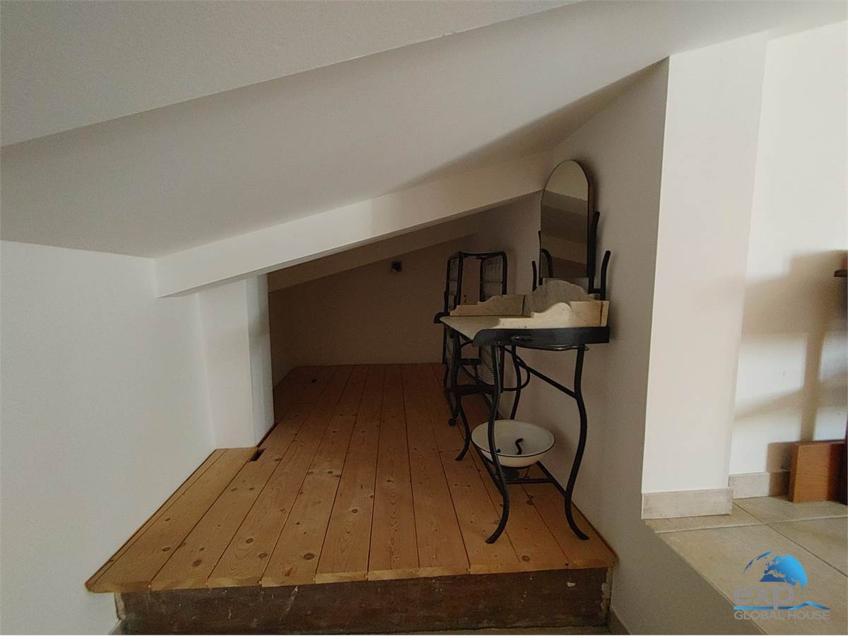 Al primo piano si trova una camera mansardata con ripostiglio e secondo bagno con doccia a pavimento.